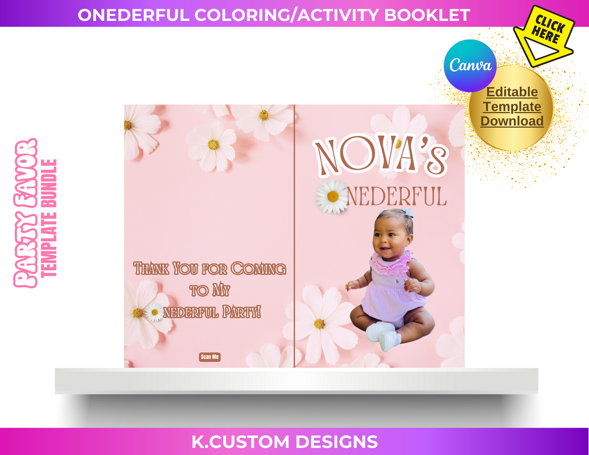 Our Onederful Coloring/Activity Booklet template (Canva) bundle includes a beautiful done-for-you template design.