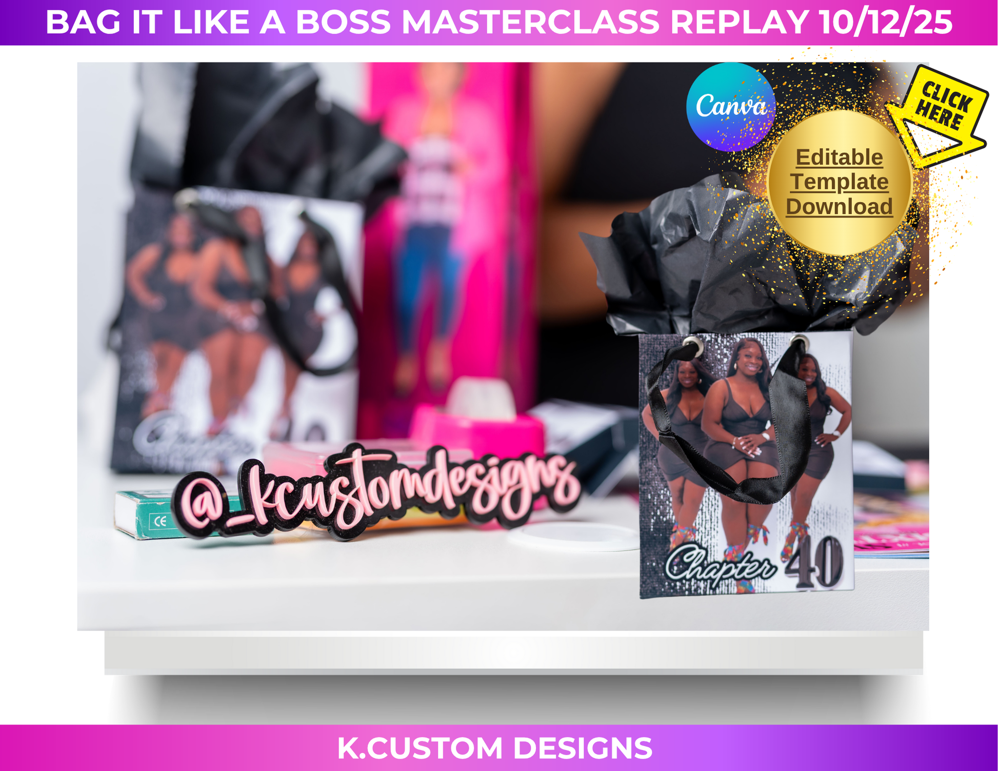 Bag It Like a Boss Class Replay → Discover how to design and create custom gift bags that impress at first sight and add instant value to your brand.
